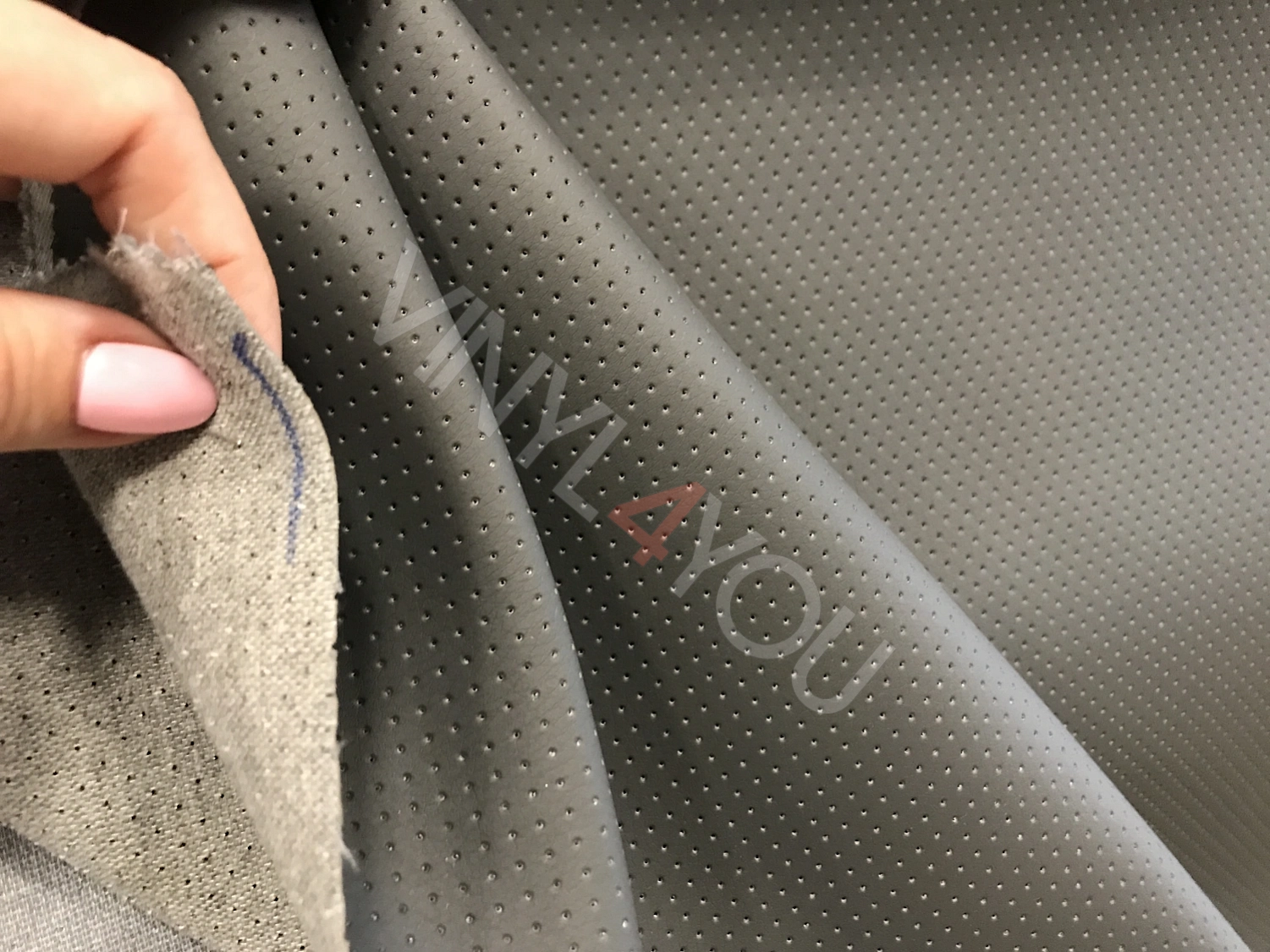 Экокожа без клея перфорированная Орегон Темно-серая