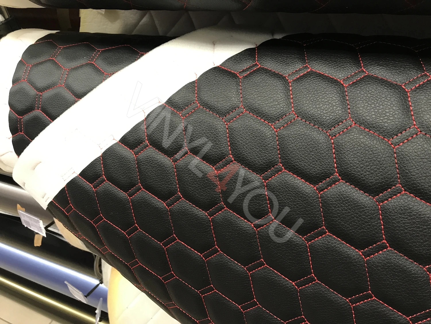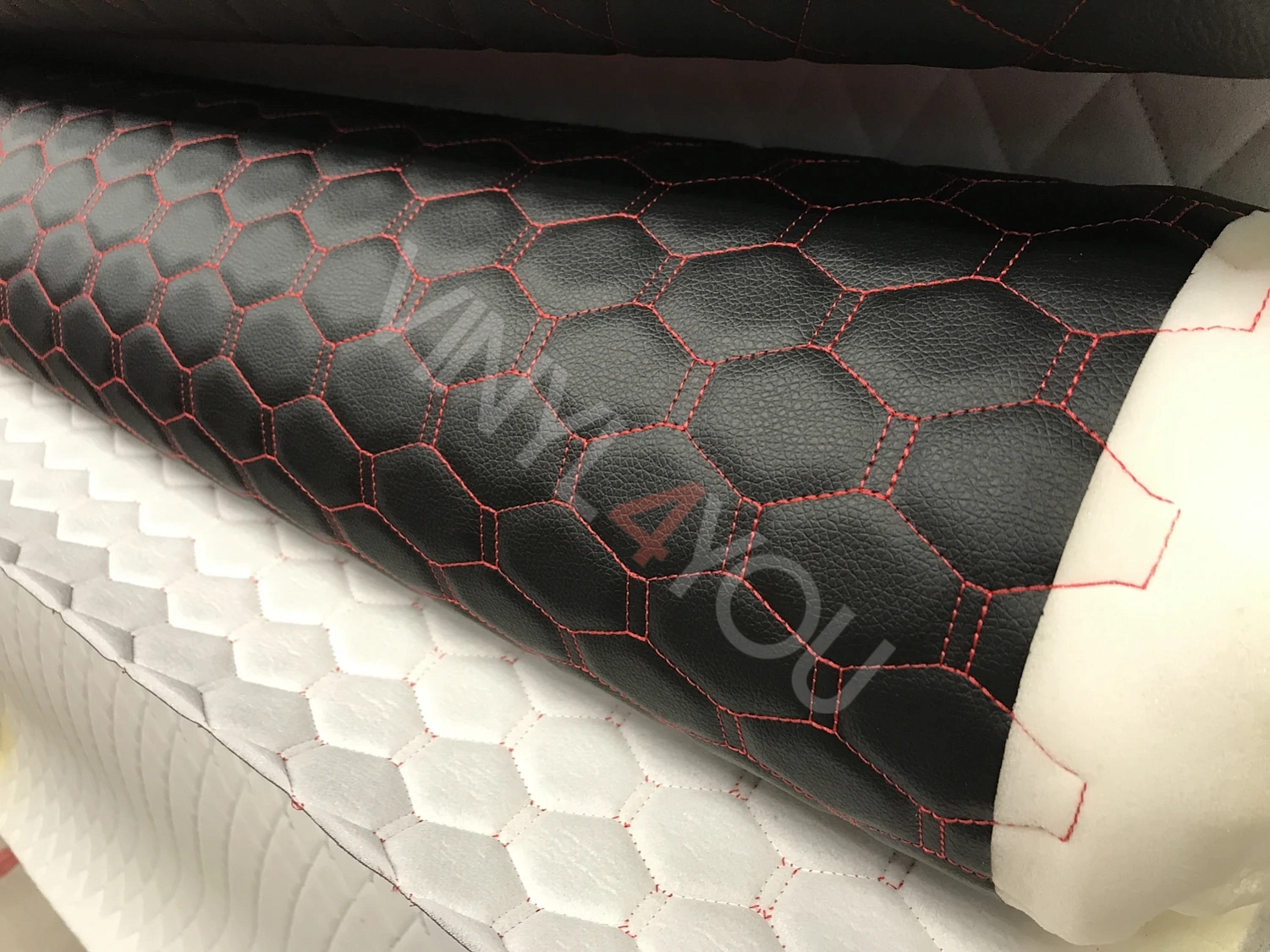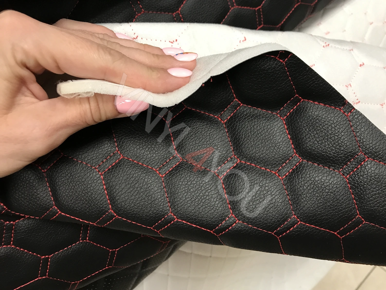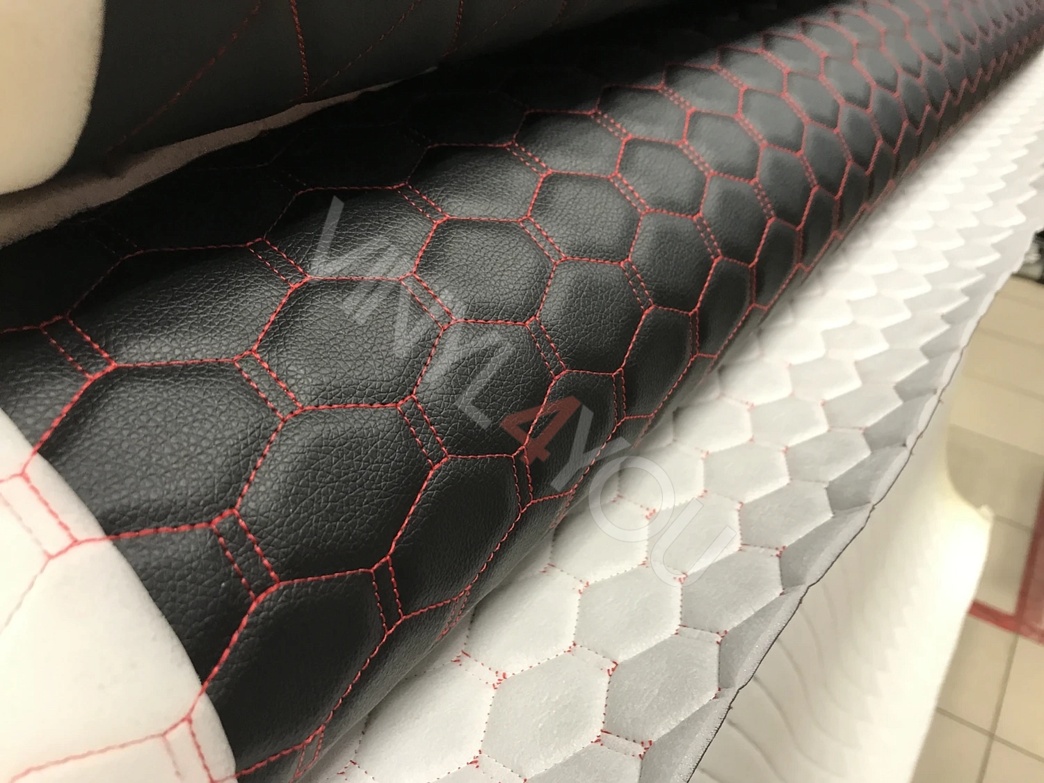 Экокожа стеганая Орегон Соты Черная с красной строчкой